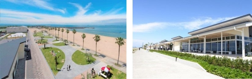 関西の玄関口である関西国際空港の対岸に位置する、関西最大級の交流・レクリエーションスポットです。高さ15mの高所アスレチックをはじめ、スケボーパーク・サッカーグラウンドなどのスポーツ施設を備えた『アクティビティエリア』や、ビーチをイメージしたBBQ場、テラス席の飲食店が並ぶ 『コミュニティエリア』、岡田浦漁港とのタイアップにより、泉州の自然の恵みをたくさん受けた、地元ならではの食材が楽しめる『マルシェエリア』、キーカラーが象徴的なヴィラが並び、キッチン、リビング、ジャグジー、BBQダイニングが用意されたお部屋でプライベートな時間を楽しめる『グランピングエリア』の4つのエリアに分かれており、一日を通してスポーツ・食・レジャーを丸ごとお楽しみいただけます。